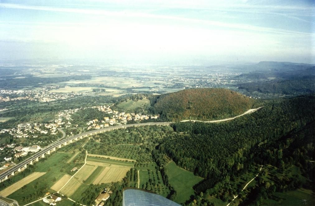 Schöne Aufnahmen vom alten Aichelberg-Viadukt und der alten Anschlußstelle Aichelberg aus der Luft, aufgenommen von Martin Gerspacher (Förster aus Bad Boll) aus seinem Segelflieger.